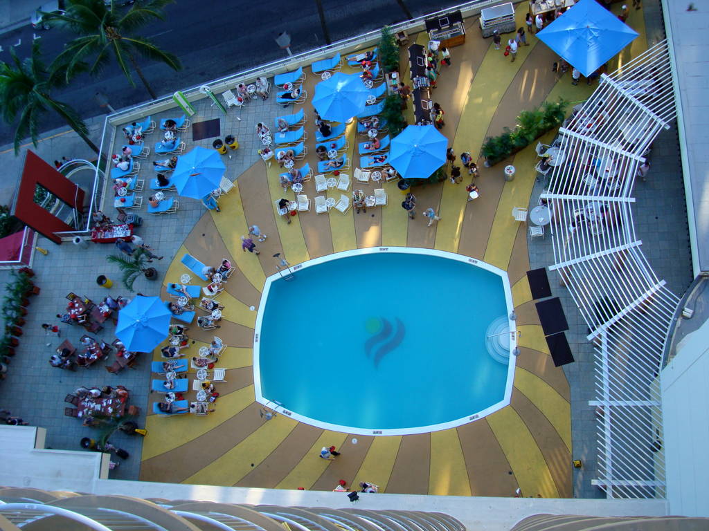 Our balcony was located directly over the swimming pool ... fairly crowded and not yet 8:30am!! We didn't use the pool ourselves, what with the beach being literally across the street!!