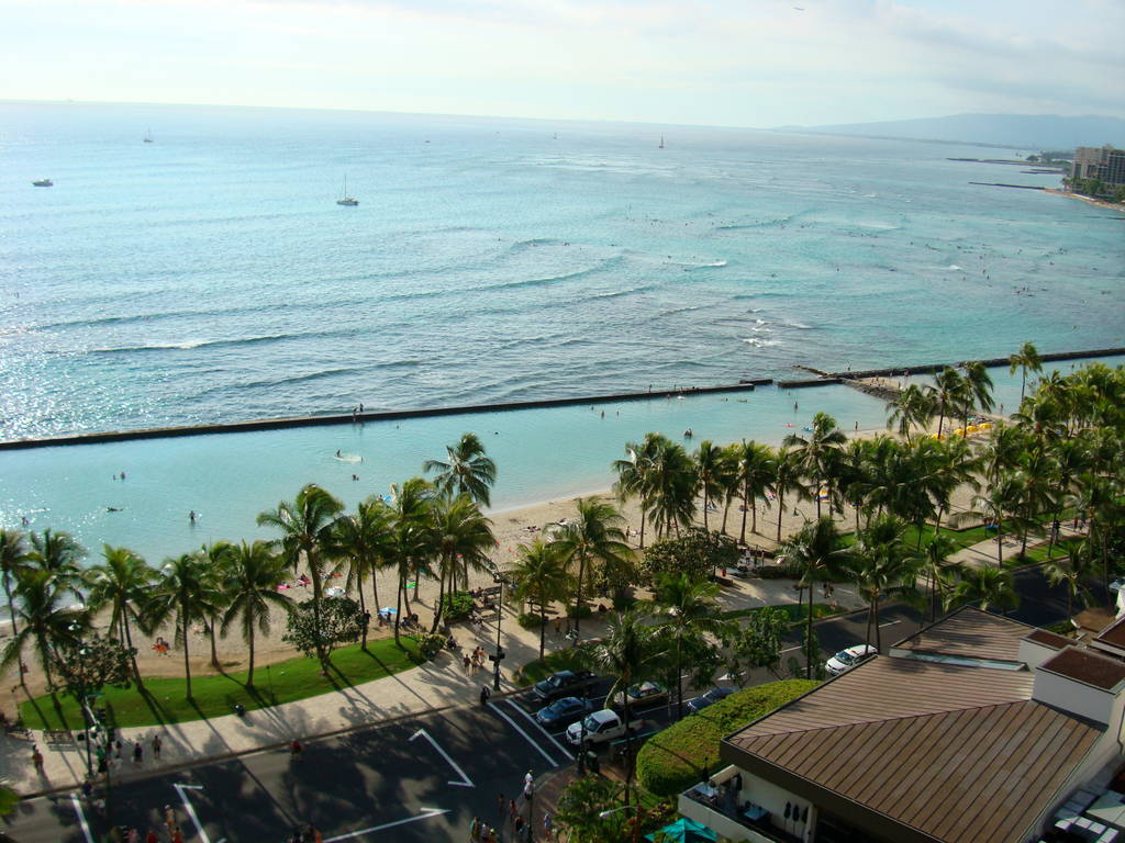 This picture was taken from our balcony ... a gorgeous view of Waikiki beach.