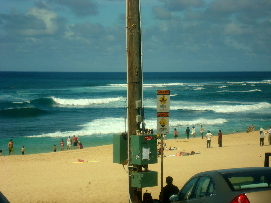 The waves out on the North Shore are known to be gigantic, we're talking 20 feet or more! This was not quite high tide, but the waves still looked pretty big (from the bus)
