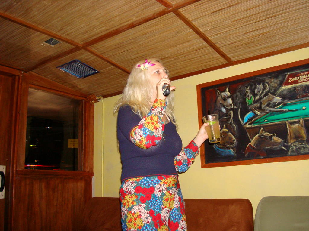 That ended our tour. It was a very long ride on a fairly cold bus, with a mostly monotone tour guide. The sights were still very nice, though... The tour bus dropped us off at our hotel. We cleaned ourselves up and then went out looking for dinner. We stopped at a nearby Mexican restaurant for "Taco Tuesday"... This restaurant also had a karaoke setup in the back ... in a private room.